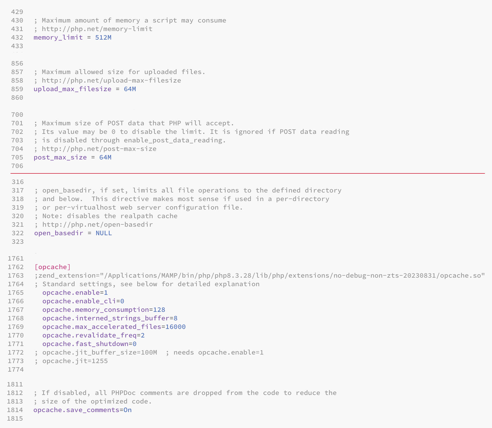 Bevor du Contao verwenden kannst, musst du noch die richtige PHP-Konfiguration einstellen. Suche die Datei php.ini deiner PHP-Version (in diesem Beispiel PHP-Version 8.3.28)! Du findest die Datei hier: Programme > MAMP > conf > php8.3.28 Öffne die Datei mit einem Texteditor; ich verwende dafür das kostenlose Programm Brackets. Du musst die folgenden drei Werte ändern: